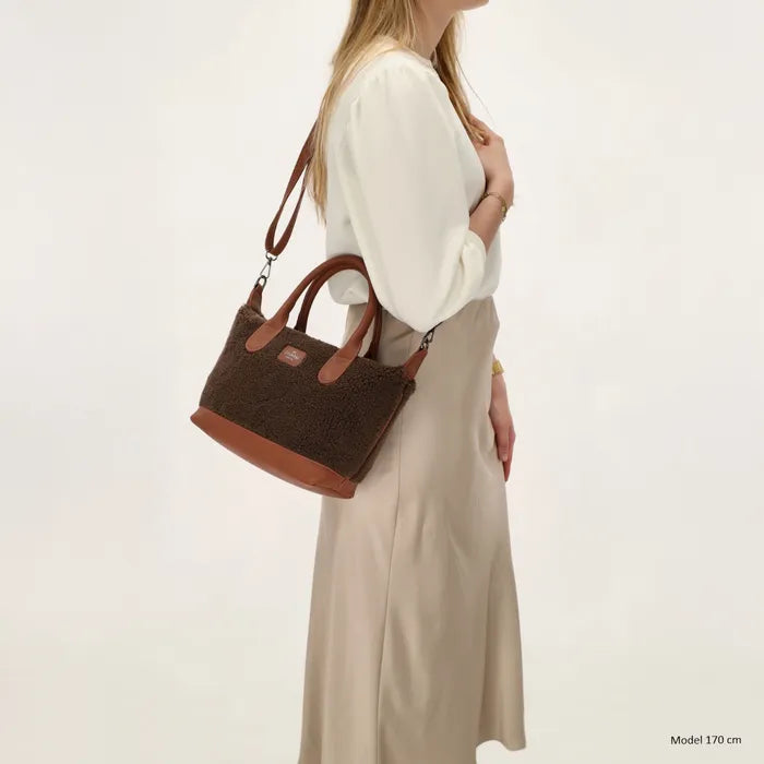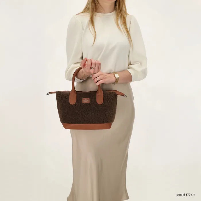 Ervaar ultiem comfort en stijl met de Charm London Buckingham teddy handtas in een rijke donkerbruine kleur. Deze unieke tas combineert de zachte teddy textuur met een elegant design, perfect voor de herfst- en wintermaanden.