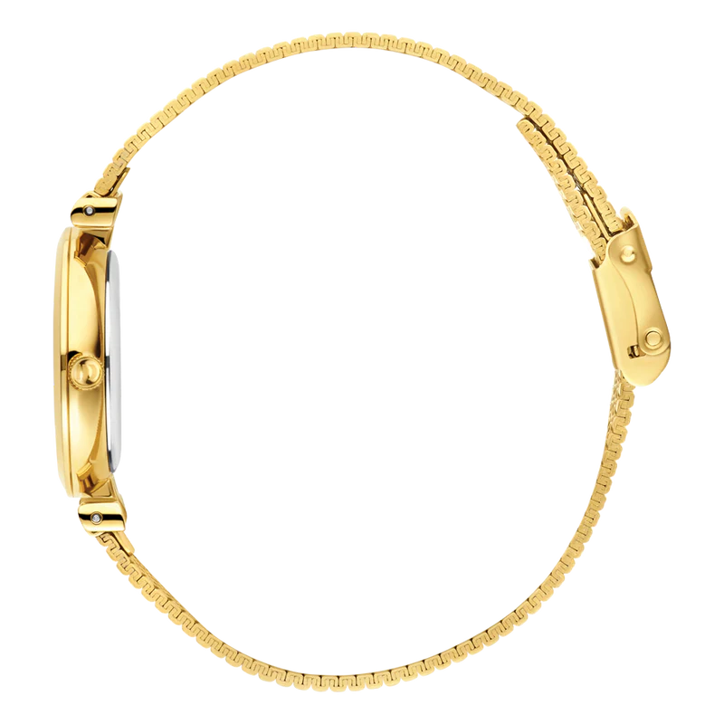 Maak kennis met de Ava Choco – het horloge dat moeiteloos minimalisme combineert met een vleugje luxe. Ontworpen voor degenen die subtiele details waarderen, maar een accessoire willen dat opvalt. De diepe chocoladekleurige wijzerplaat voegt een warme, moderne sfeer toe, terwijl de goudkleurige band het een verfijnde en elegante look geeft. De goudkleurige band biedt een strakke esthetiek en de minimalistische wijzerplaat met gouden accenten houdt alles chic en verfijnd. Of u hem nu draagt met uw favoriete sieraden of op zichzelf, de Ava Choco past bij elke stijl – van casual tot elegant. Perfect voor dagelijks gebruik, maar met genoeg klasse voor speciale gelegenheden, de Ava Choco is jouw go-to voor een moeiteloze, luxueuze look. Laat je accessoires spreken en maak een statement met verfijnde eenvoud.