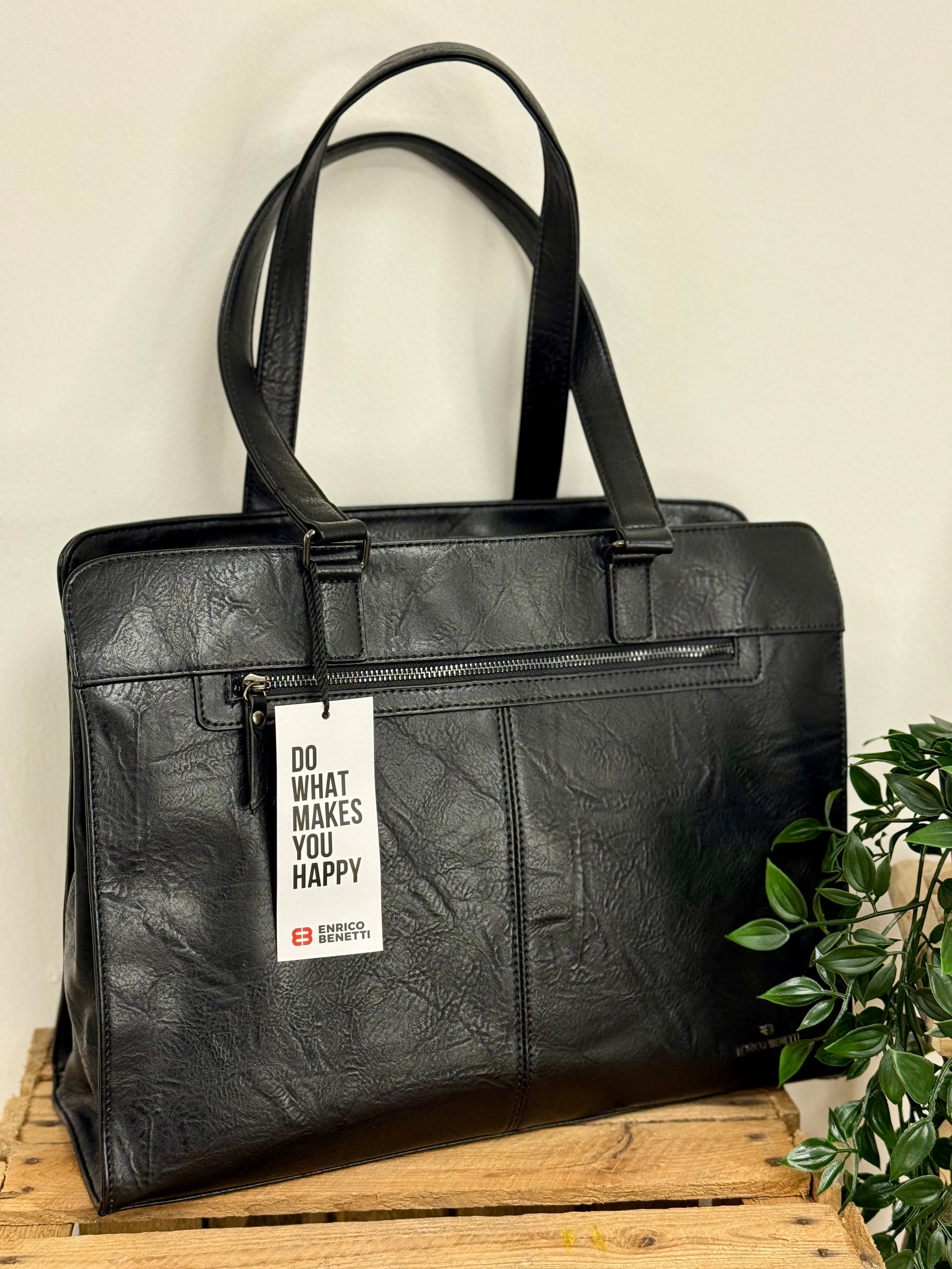 Enrico Benetti Julia Schoudertas Voor Laptop 15 Inch Zwart PU Materiaal Dames Tas