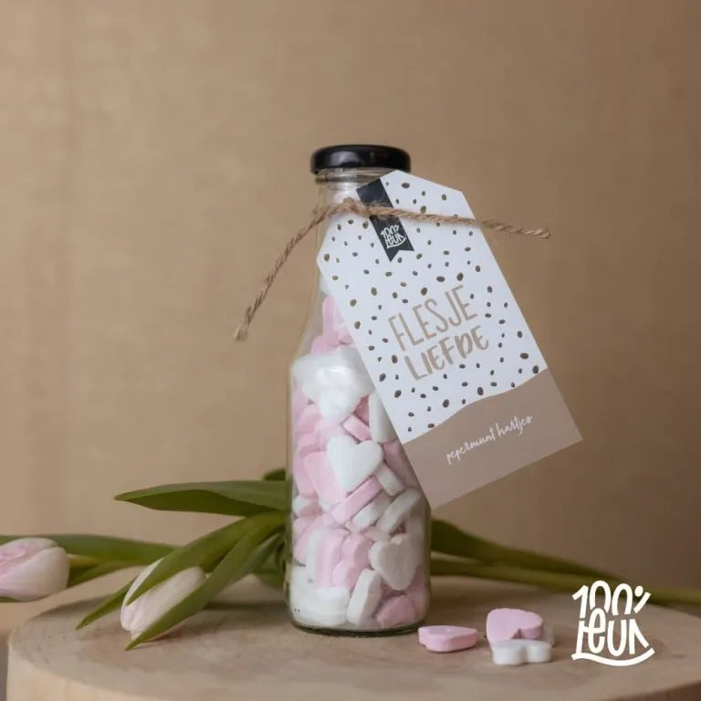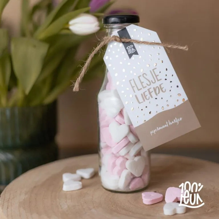 Ben je naast dit flesje liefde ook nog op zoek naar andere cadeautjes? Bekijk al onze 100%LEUKE geschenken op de site. Wij hebben originele cadeaus voor elk moment en persoon.