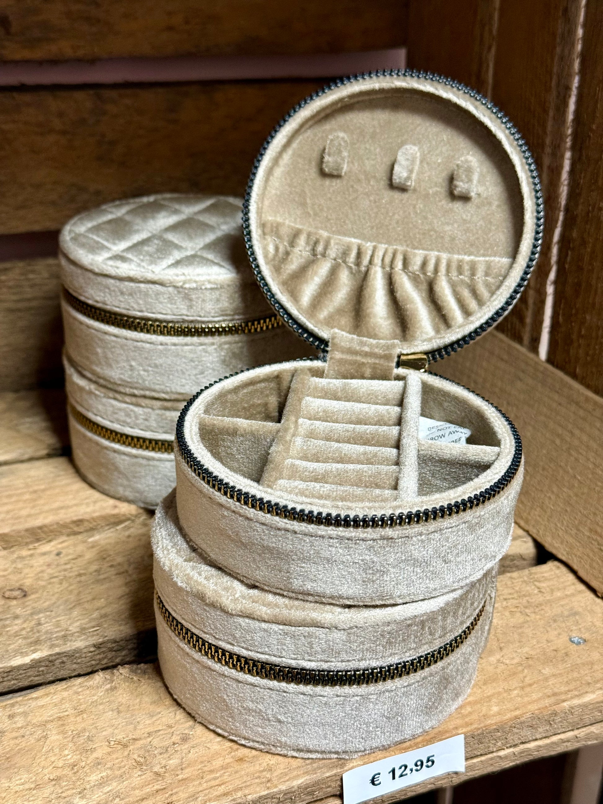 Het ronde ontwerp combineert tijdloze elegantie met praktische functionaliteit, zodat je sieraden georganiseerd blijven zonder te krassen of kwijt te raken.